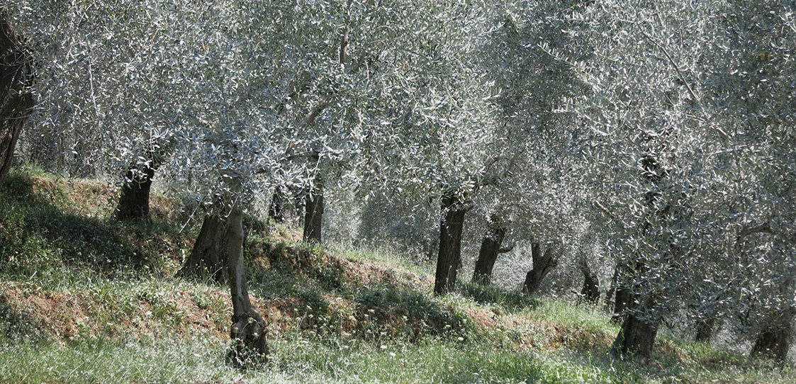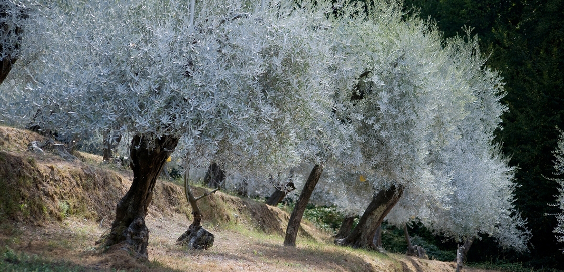 | Der Olivenhain symbolisiert ganzes Leben. Stolz und stark, voll antiker Erinnerungen, wurde er nur zu oft verletzt und verlassen, fand aber immer wieder liebevolle Hände, um dieser Pflanze die Würde angehen zu lassen, die sie verdient. Heute sind es unsere Hände und es ist etwas ganz Besonderes für uns, diese alten Bäume liebevoll zu pflegen, sie wachsen und gedeihen zu sehen und dieses Erbe an unsere Kinder weiterzugeben. Unser Öl erzählt die Geschichte dieser Bäume und aus Respekt unterstützen und kräftigen wir unsere Pflanzen und das Land ausschließlich mit Naturstoffen. In der Toskana gibt es circa 14 Millionen Olivenbäume auf 93000 Hektar Land und 70000 Produzenten, in der Provinz Lucca 7000 Olivenölhersteller, von denen 75 % nicht mehr als 2 Hektar Land besitzen. Unser 4 ha großer, denkmalgeschützter Olivenhain, der in Terrassen angelegt ist, hat einen alten Baumbestand von 1111 Olivenbäumen, die bis zu 400 Jahre alt sind und sich aus den Sorten Frantoio (80 %), Leccino (10 %), Maurino (5 %) und Quercetano (5 %) zusammensetzt.